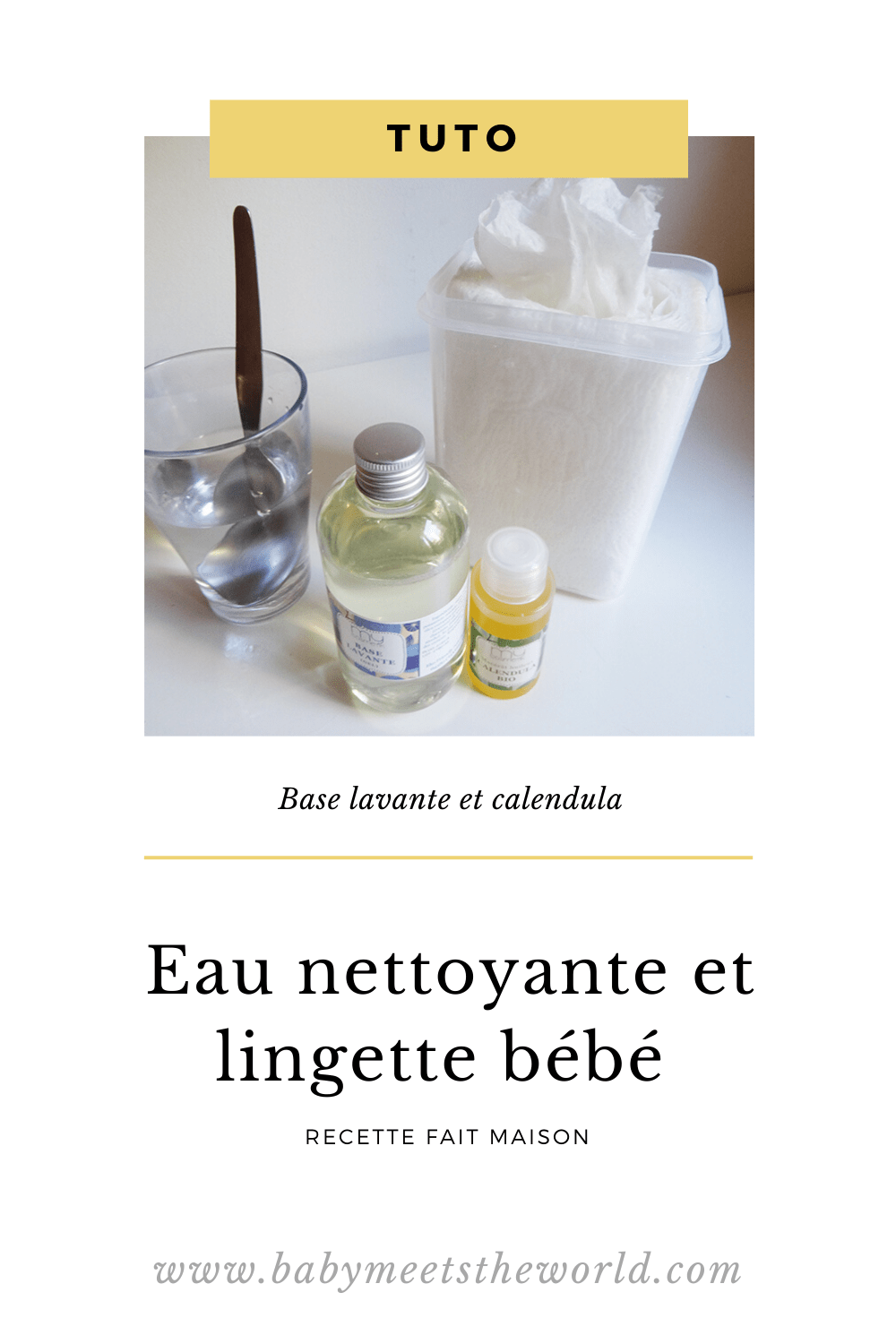 Voici donc pour commencer l’eau nettoyante et les lingettes bébé !