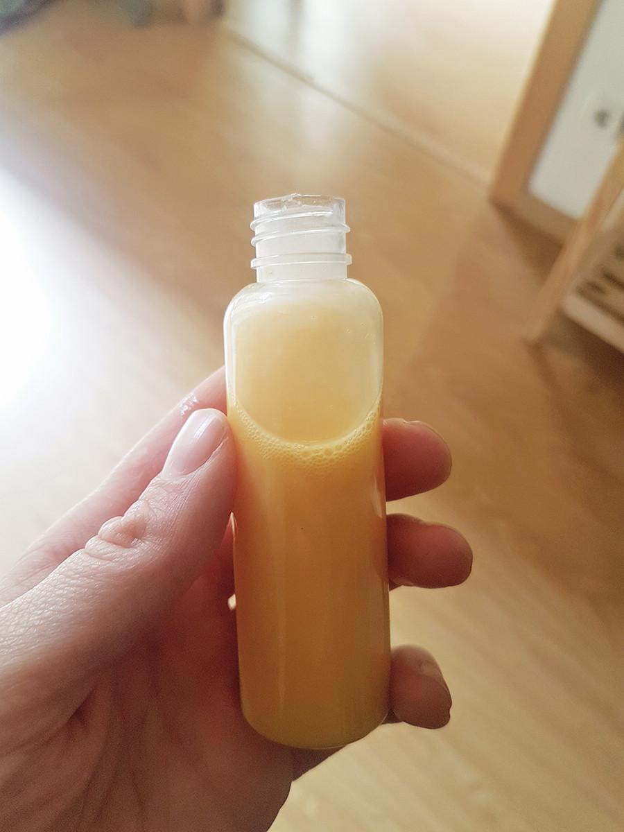 Au bout de 3 jours j’ai donc décidé de recommencer mais cette fois-ci avec l’oeuf directement mélangé avec 2 gouttes d’huile essentielle d’arbre à thé. J’ai incorporé le tout dans un flocon que j’avais déjà.