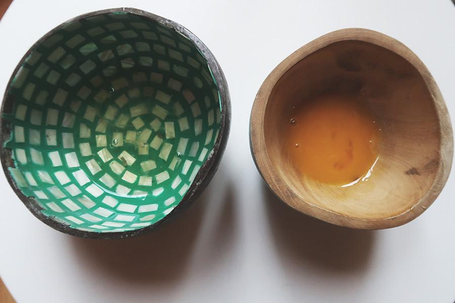Vous avez été nombreuses à suivre mes péripéties et mes expériences farfelues de cheveux. Après ma cure de sébum et son premier lavage à l’argile verte, je teste donc l’œuf.