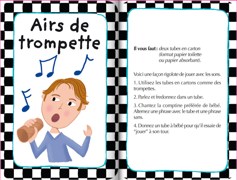 Le livre est donc découpé en fonction de ces différentes phases et il y a des activité à proposer à bébé en fonction des phases et donc des moments de la journée.