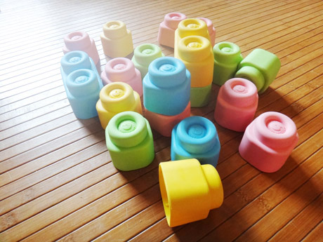 J’aime particulièrement le faite qu’ils soient mous. Il est donc quasi impossible qu’il se blesse avec en tombant dessus. Les couleurs sont agréables et pas trop flashs. Ils ont une odeur particulière de bonbon, j’adore ! Bref le seul bémol c’est qu’il n’y a pas que des cubes doubles ou simples !