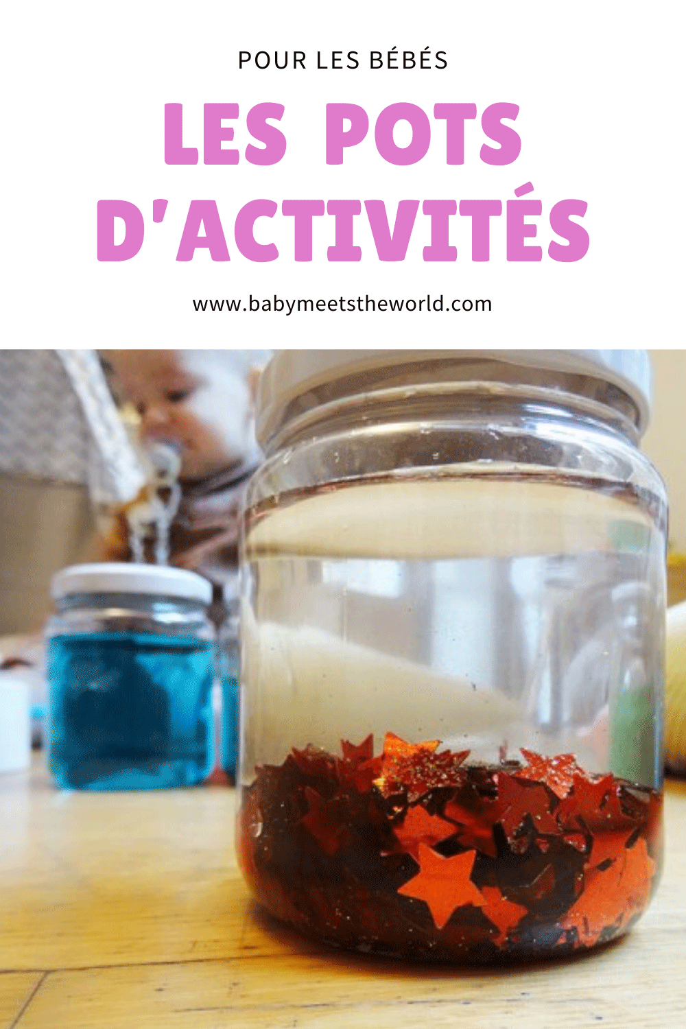 Il y a des pots qu’ils peuvent ouvrir comme ceux avec les bouchons de compote, les dominos et les bâtonnets. Bébé luciole adore enlever et remettre dans les pots les petits éléments. Pour les autres il suffit de mettre de la glu sur le couvercle.