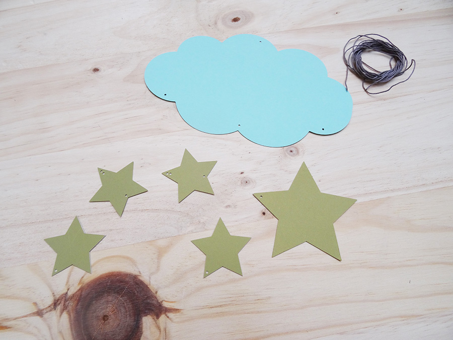 Tout d’abord il a un concept un peu différent des autres. En plus du livre vous y trouverez un joli petit mobile nuage et étoile à fabriquer ! Ne partez pas ! Rien de bien difficile ! Il suffit d’accrocher les éléments à la ficelle et hop le tour est joué pour le plus beau des effets ! J’ai vraiment aimé cette petite touche en plus, c’est original et pour le coup le mobile est assez neutre et peut se fondre dans n’importe quel type de déco.