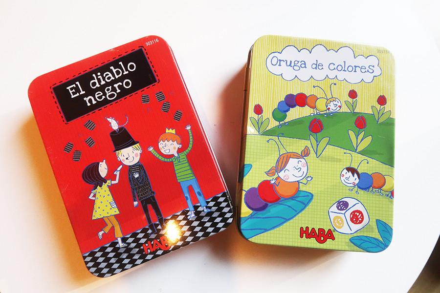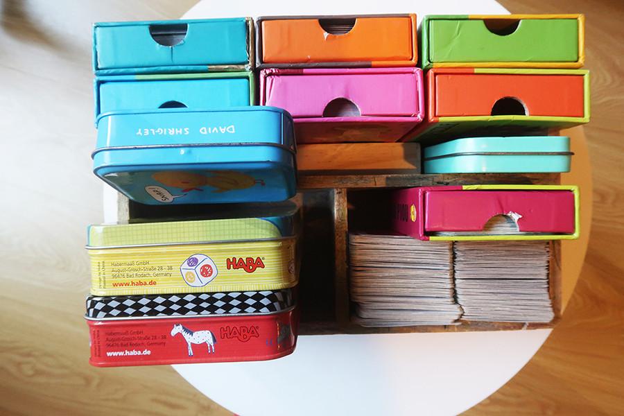 Et pour finir nous avons deux petits jeux de la marque Haba. J’aime beaucoup le format et la petite boite en fer qui permet de bien protéger les cartes !