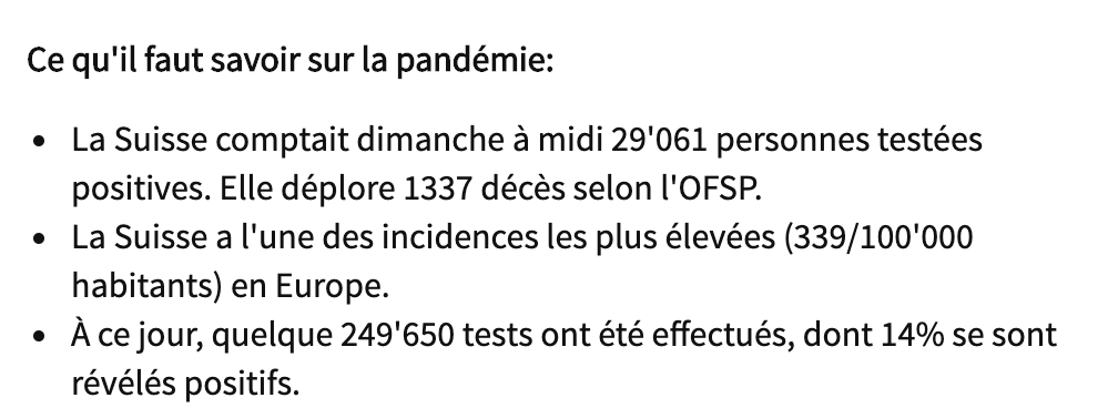 La situation en Suisse : source 24heures.ch