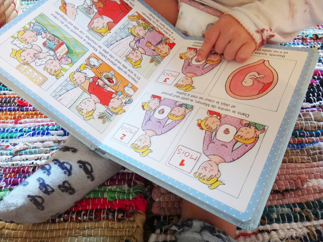 Nous avons le livre « attendre un bébé » que j’adore, je l’ai trouvé chez Book Off pour 2€ et j’ai eu le coup de coeur car on y voit une couveuse que je montre souvent à ma Poupette pour lui expliquer sa naissance :)