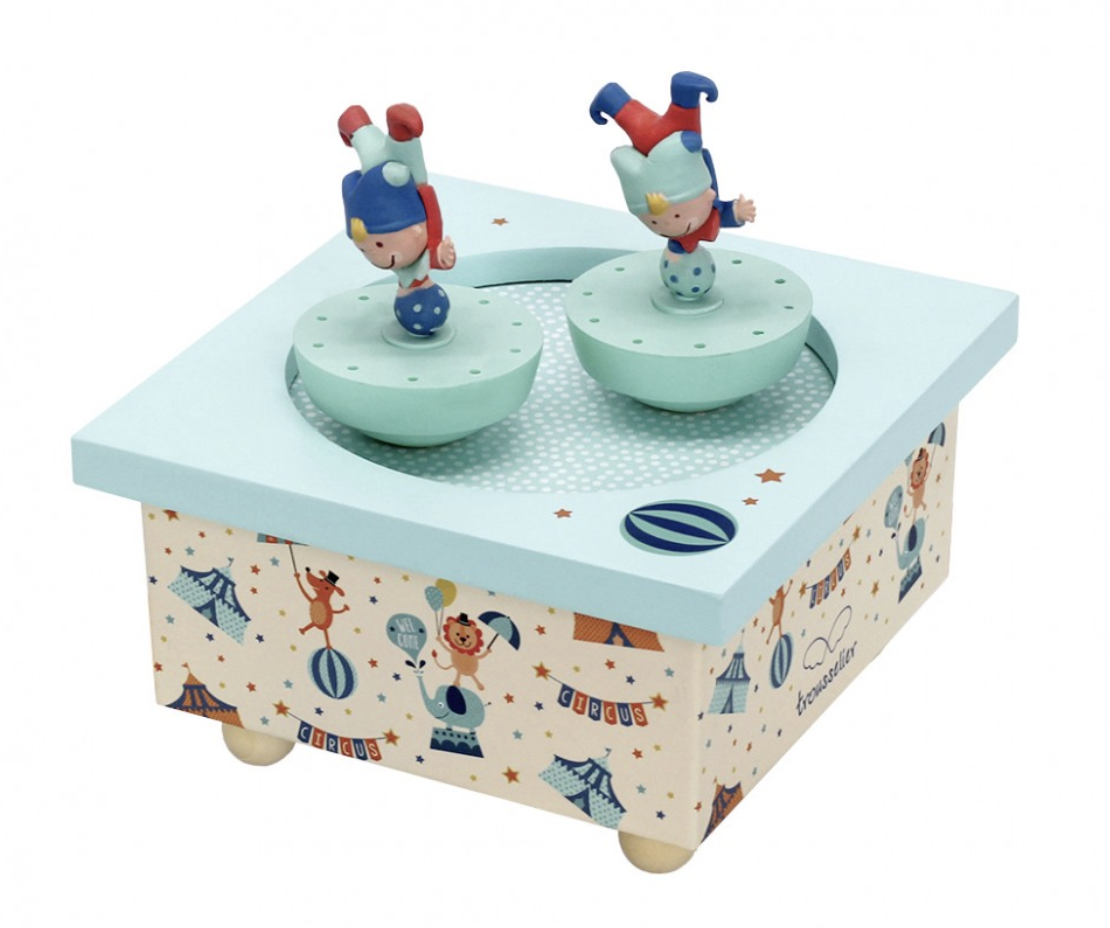 On m’a offert une boite à musique pour mes deux enfants. Ils adorent encore les utiliser. Elles ont le même design, sont petites et toutes jolies. Je les conserve d’ailleurs précieusement. Je crois que c’est ce que j’ai préféré dans tous les cadeaux reçus. On en trouve de très jolies un peu partout, mieux vaut les choisir de couleurs neutres avec une mélodie qui vous plait et qui est adapté pour bébé, la musique est importante pour son bien-être ! On trimballait les nôtres partout jusqu’à dans la poussette en balade !