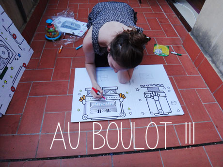 Une fois coloriés on peut monter les boites, rien de plus simple mais c’est quand même le papa qui s’y colle. Un vrai travail d’equipe !