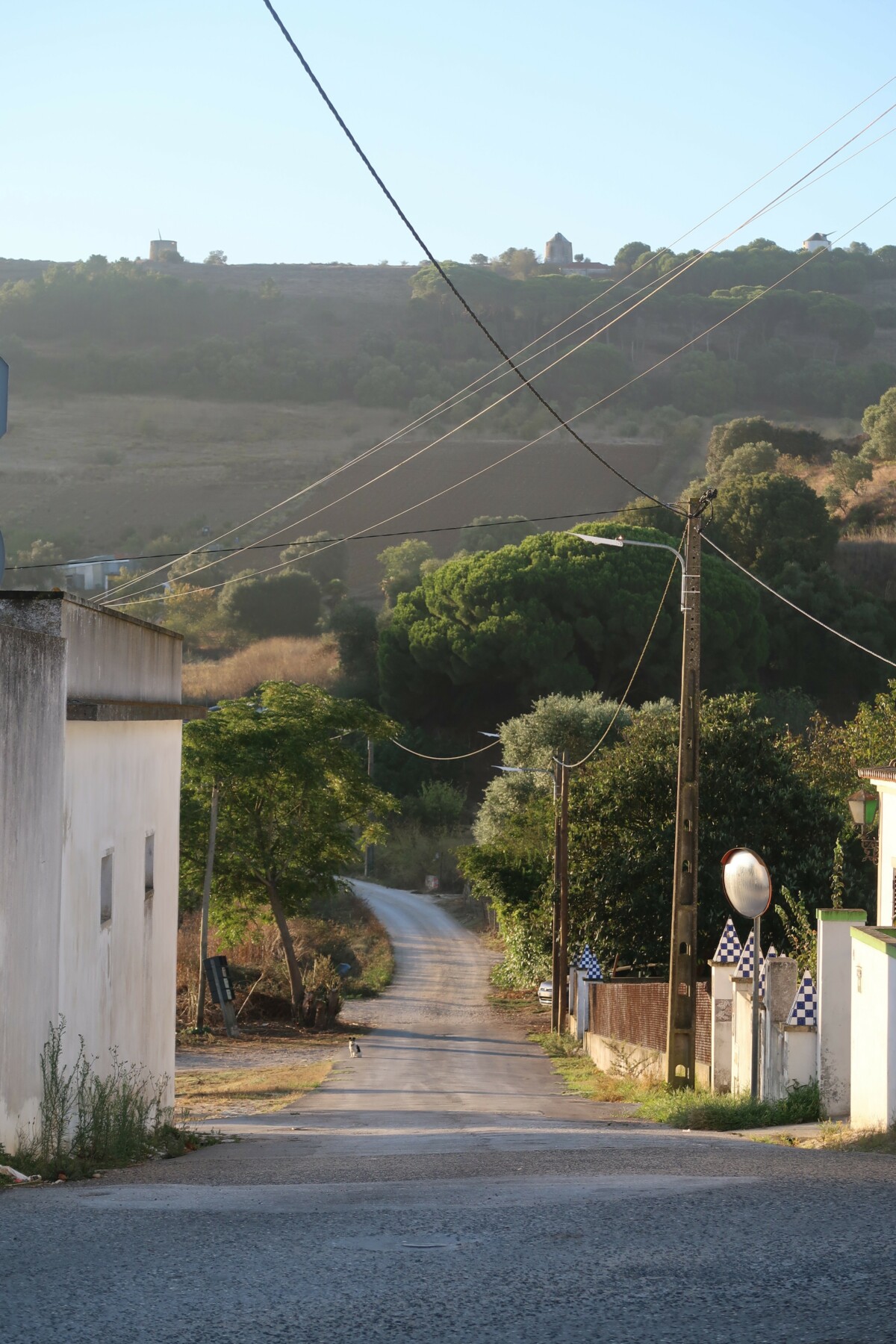 Le petit village typique, avec ses maisons blanches ou colorées. Les personnes âgées qui discutent sur les bancs ou regardent passer la journée sur une chaise devant chez eux. Les collines au loin avec les moulins, les moutons, le son des cloches et celui des coques, l’église si blanche et ses pavés encore et toujours si typiques du Portugal, j’imagine !