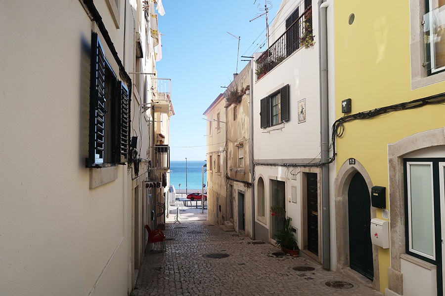 Nous nous sommes ensuite rendus dans la petite ville de Sesimbra au bord de l’atlantique. C’était calme, ensoleillé, une parfaite après-midi de fin d’été. La plage de sable fin et d’eau turquoise était juste parfaite, surtout avec les falaises au loin. Par contre ça n’est pas la Méditerranée. L’eau est froide ! Rien de mieux que de se promener dans les petites rues pavées à l’ombre du soleil et de manger une de leur spécialité avec vue sur la mer !