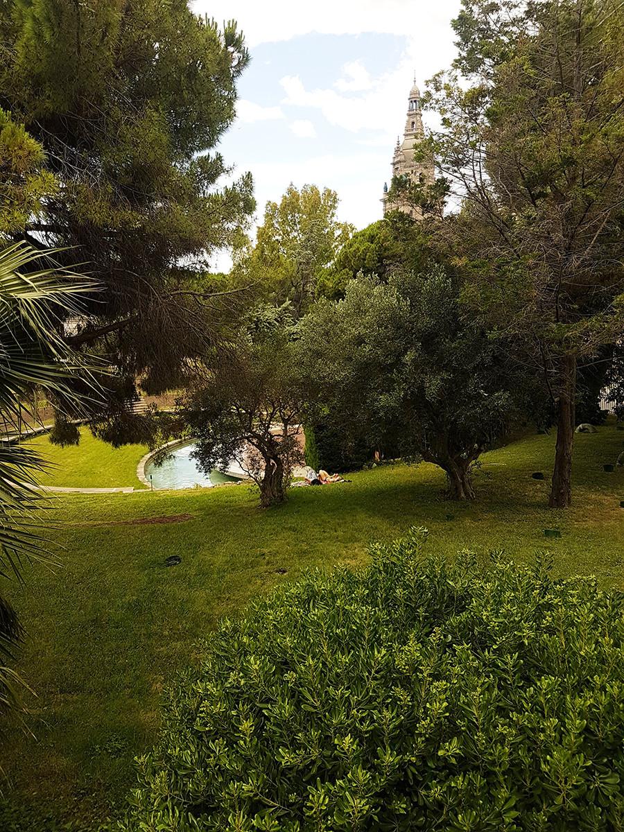 Il y a peu, j’ai découvert un joli jardin dans le quartier du Montjuic, juste à côté du musée Joan Miro. Je n’y avait jamais été en 15 ans de vie ici ! À notre grande surprise, nous avons trouvé un parc assez vide, plutôt grand et vraiment très beau. Il me fait penser à un jardin français d’ailleurs. C’est l’endroit idéal pour se relaxer, pique-niquer et se balader. Vous aurez certes fait vite le tour mais vous pourrez tout aussi vous installer sur l’herbe pour rêvasser. Chose que nous avons fait !