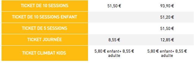 Le Climbat est un club à l’accès libre. Pas besoin d’abonnement. Vous payez votre entrée ainsi que le harnais si vous n’en avez pas et vous y restez le temps que vous voulez. Si vous ne souhaitez pas faire de l’escalade, mais seulement vos enfants, pas de soucis, vous n’aurez pas besoin de payer vos entrées et ça, c’est top !
