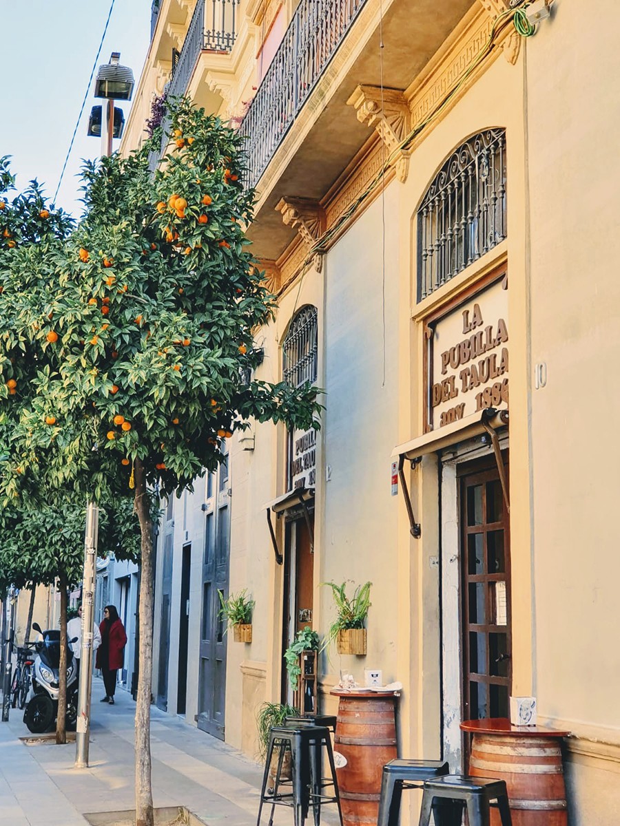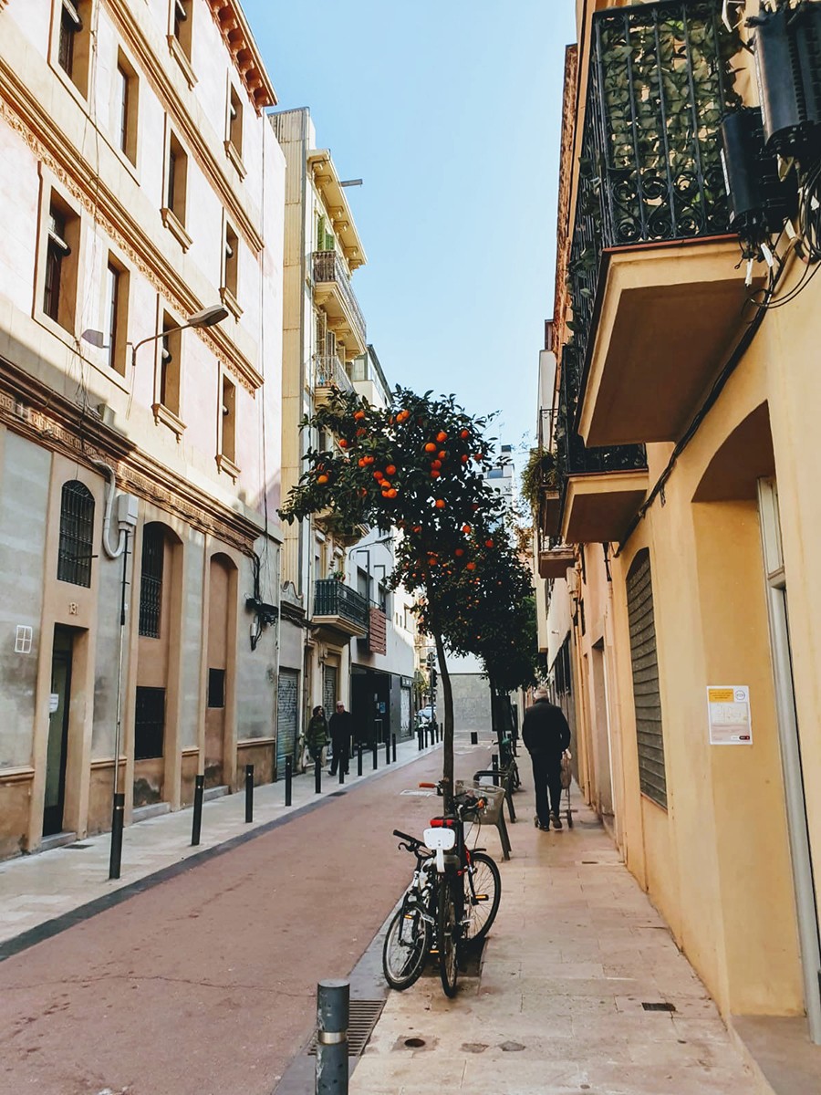 Si vous êtes de passage dans la ville et cherchez un petit quartier plus authentique et loin de la foule alors je pense que le Poblenou sera parfait pour vous. Au-delà de sa belle rambla, perdez-vous dans les petites rues bordées d’orangers, les petits bâtiments colorés et observez les grandes portes qui servaient à l’époque à faire rentrer les chevaux.