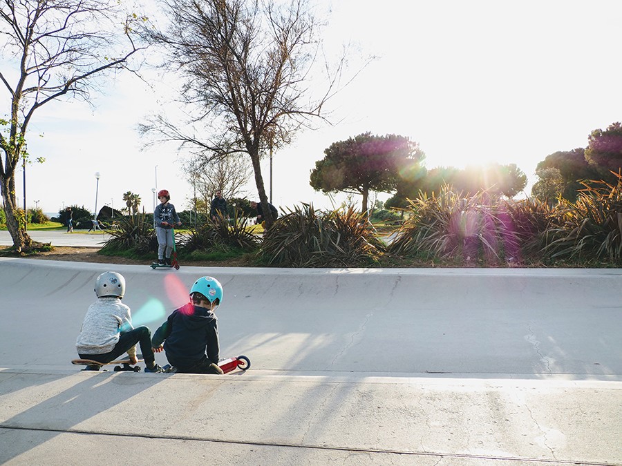 Au delà des rues, vous y trouverez le skate park de Mar Bella (c’est la plage du quartier du Poblenou) c’est un endroit extra pour les petits fans de trottinettes, rollers ou skate. L’endroit est tout de même assez grand pour laisser de la place à chacun.