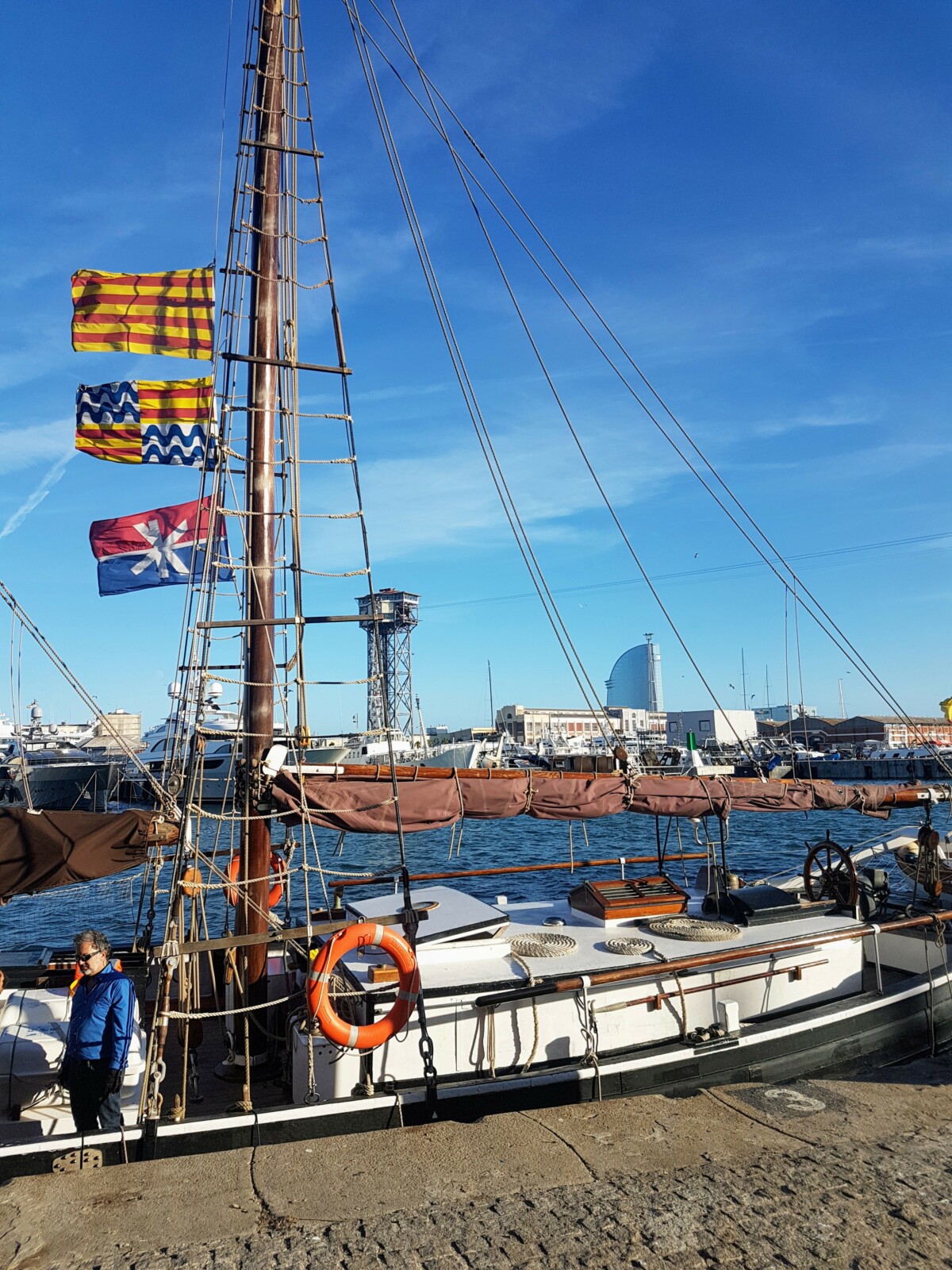 Il y a quelques jours, on m’a proposé de naviguer sur un voilier de la ville de Badalona jusqu’au port de Barcelona en collaboration avec Barcelone és molt més. Ni une, ni deux, j’ai accepté. Je me suis dit que l’expérience pourrait être sympa, surtout pour les minus ! Ils ne sont quasi jamais montés sur un bateau, encore moins un voilier ! C’était la bonne occasion pour leur faire découvrir ce qu’était la passion de leur papy, mon père !