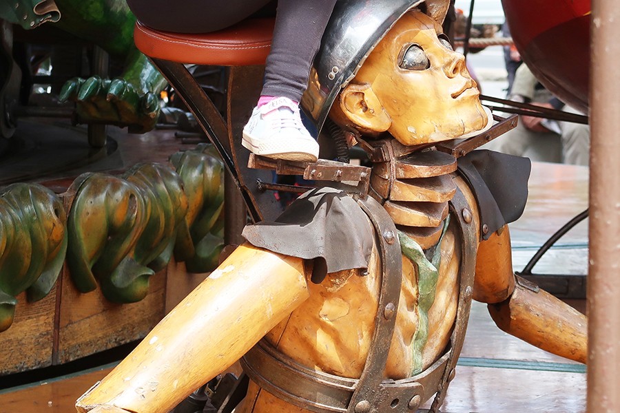 Juste à côté il y a un magnifique manège ancien en bois et fer. On peut monter sur des bêtes étranges. C’est assez particulier mais vraiment beau à voir.